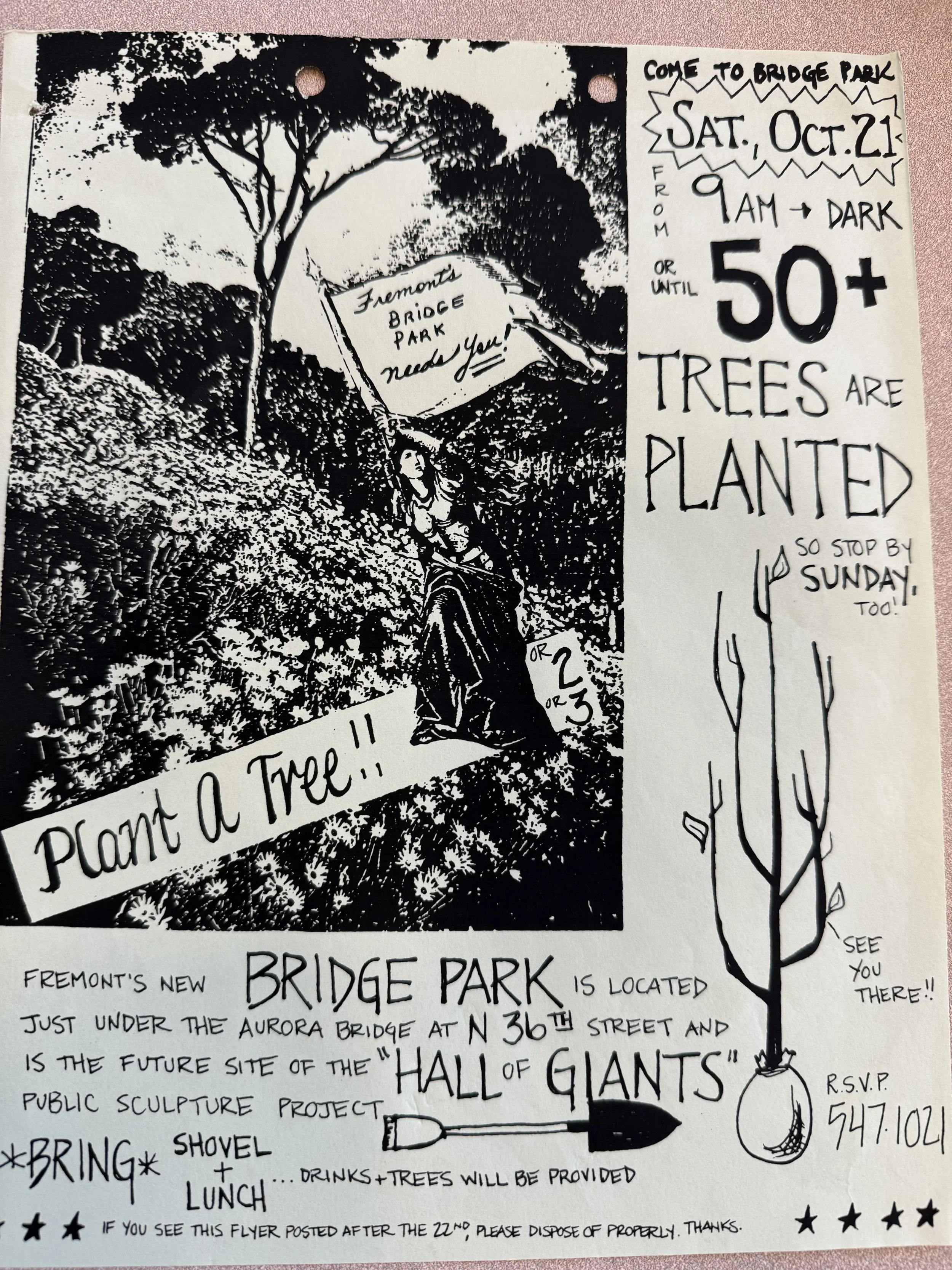 On Saturday, October 12 from 10:00 AM – 1:00 PM, Friends of Troll’s Knoll is hosting a Community Work Party for the park to plant new trees, mulch the trails, and plant some new bulbs for the spring! We’re also paying homage to one of the original community flyers that helped inspire care for this space. We’ve adapted its artwork for our 2025 event to celebrate the park’s history and carry that same spirit forward.